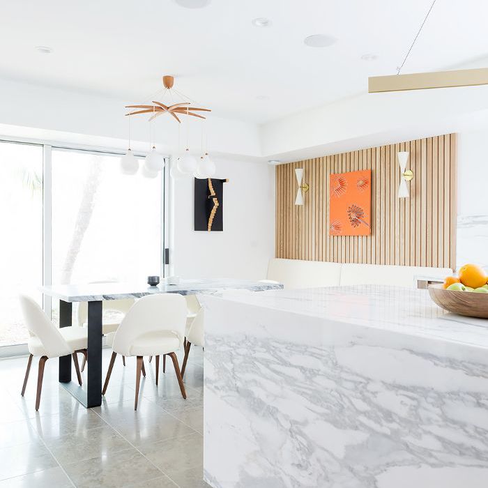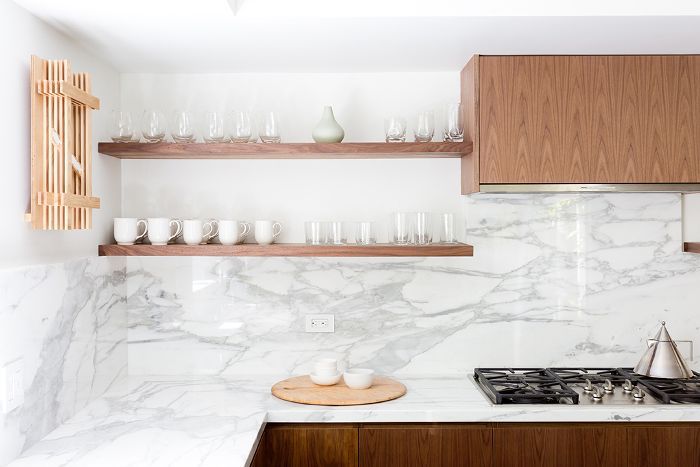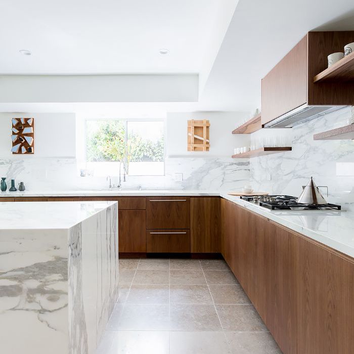 大理石台面,开放的货架,定制橱柜核桃,长椅座位,和一个巨大的大理石岛需要我们多说吗?有厨房羡慕,然后有重大的厨房羡慕。而就我们而言,从洛杉矶的最新项目洛杉矶为基础单板设计绝对属于后一类。事实上,唯一的事情更令人叫绝比最终的设计是在看到打击之前和之后的转变。